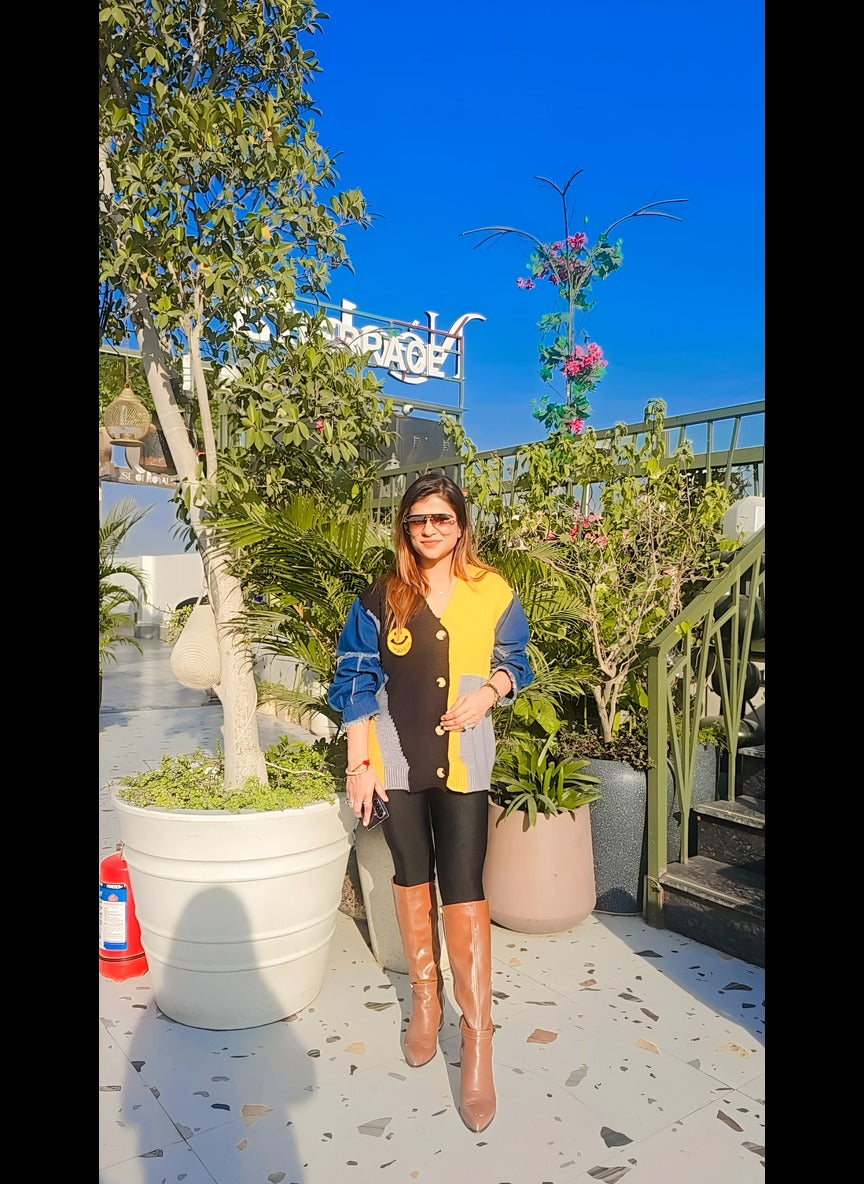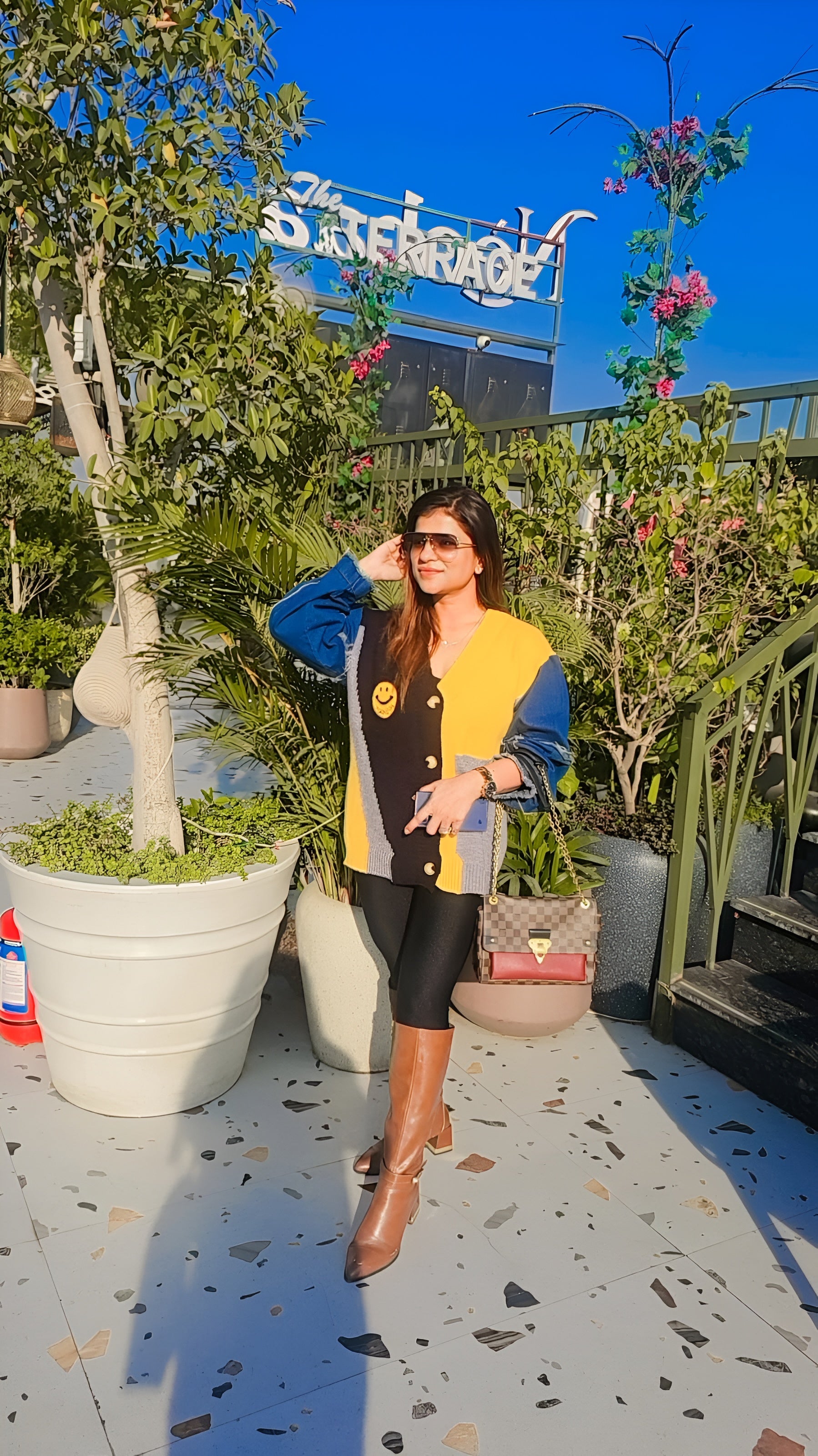 Patchwork Design: Striking colour-block knit panels in contrasting shades for a modern, artistic look.