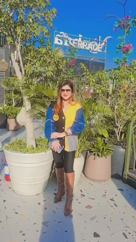 Bring bold, street-inspired style to your winter wardrobe with this uniquely crafted Patchwork Knit Sweater/Cardigan/Sweatshirt featuring Denim Sleeves. Designed for fashion-forward individuals, this piece blends cosy knit textures with edgy denim for a standout look.